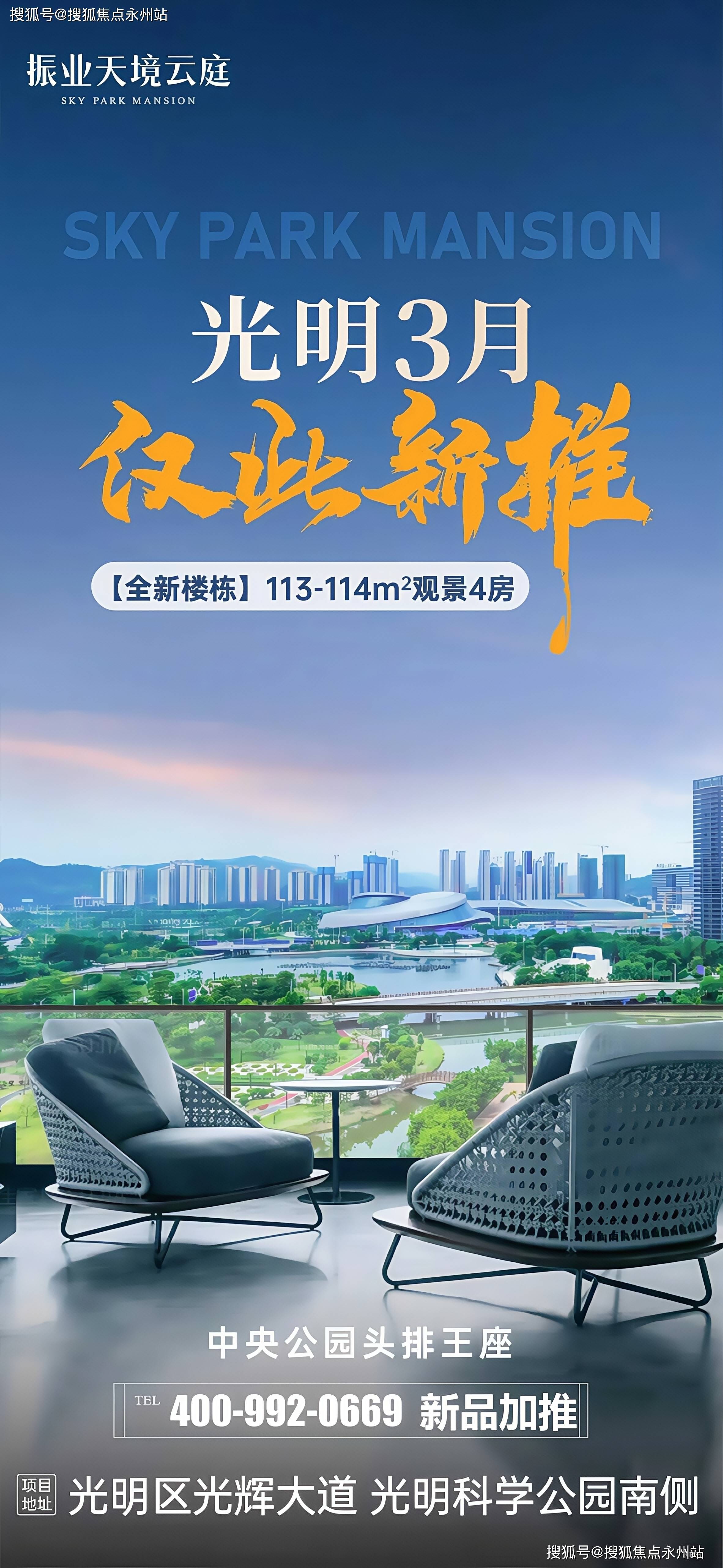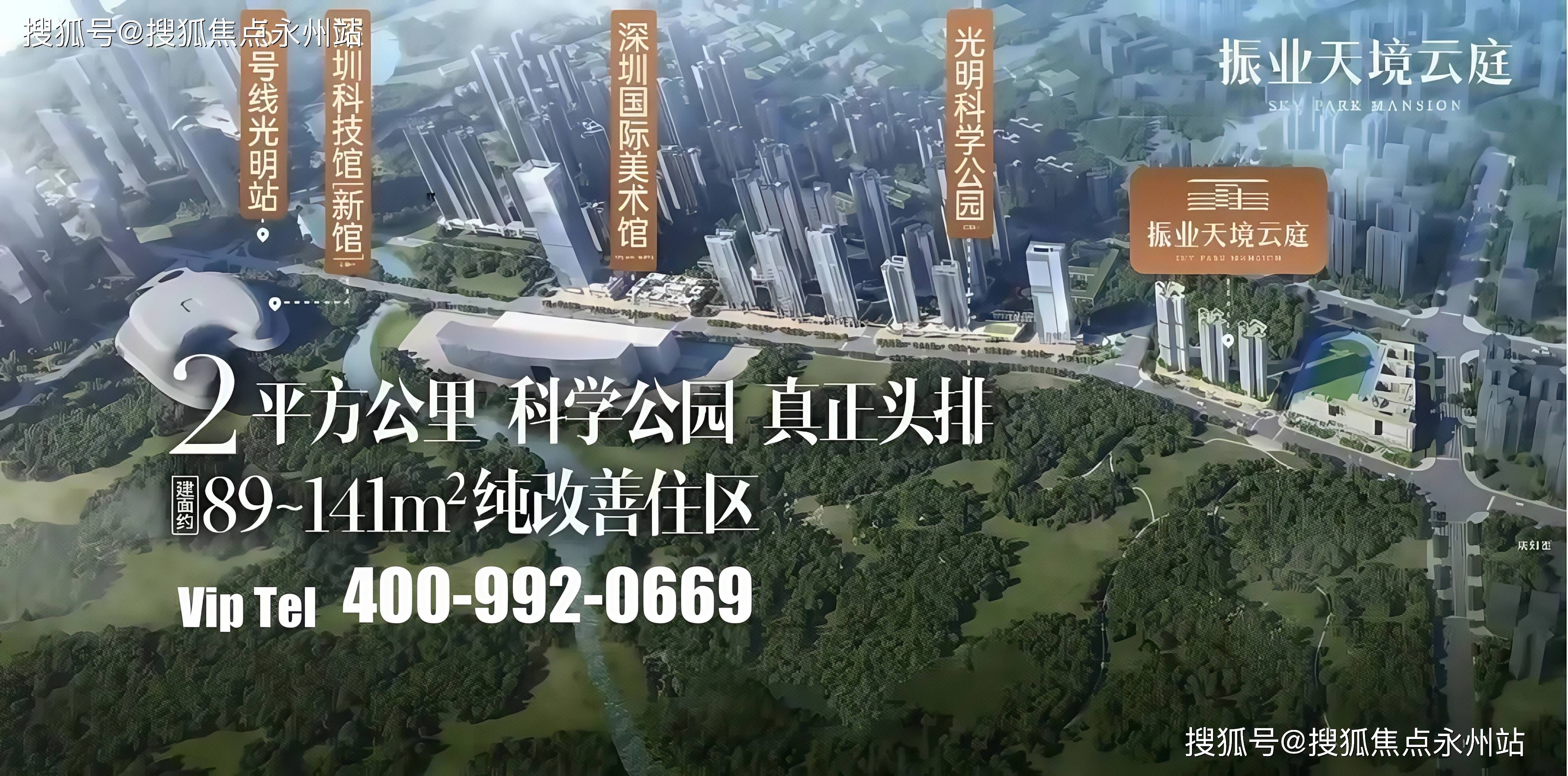 该项目原是振业集团在2023年3月份以10.29亿+竞配3000平竞得的光明新湖A650-0385宗地,商品房毛坯限价4.93万/㎡,也是光明中心区板块首个一线看科学公园的新楼盘,东北向的视野景观非常靓,科学公园全貌一览无遗。